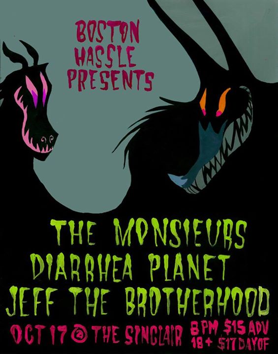 I knew from off the bat that this show was gonna be wicked. Megashredders JEFF the Brotherhood and Megarippers Diarrhea Planet. Opening were the local power trio The Monsieurs. Their brand of trashy lofi garage punk excited the crowd. Their singer, Andy MacBain had quite the swag as well. They just put out a new album and for sure it will win them a Grammy in 2015. They have a lot more shows around the area so czech them out!
