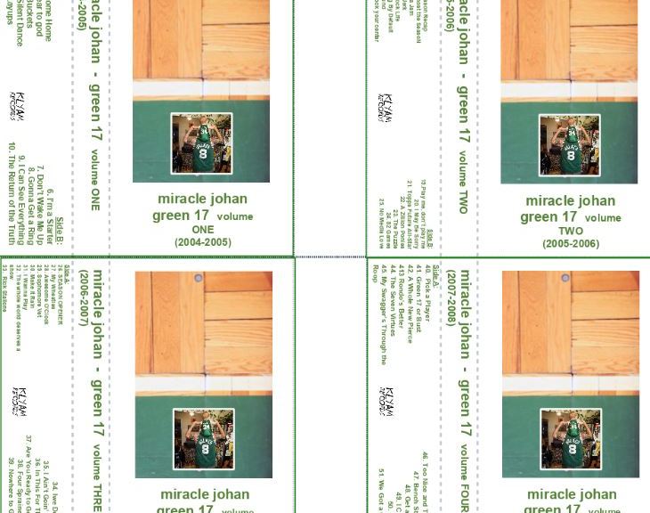To commemorate the Boston Celtics championship run in 2008, to celebrate all of the music that Miracle Johan created since he began the project in 2005, and to optimistically anticipate Banner 18, KLYAM Records is proudly releasing eighteen, four tape box sets of Miracle Johan’s music. Each individual volume/year will be available as well! All of Miracle Johan’s Green 17 and other recordings dating back to the late ‘90s (special shout out to the Hawaii Demos) are streaming on Bandcamp!