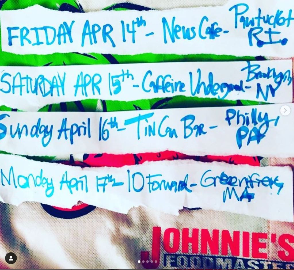 - April 15 – Johnnie & The Foodmasters, Mill, Amatoxis, Wallfacer, GT Arpe @ Caffeine Underground, Brooklyn NY