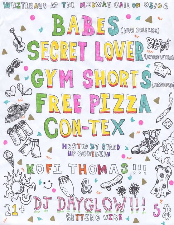 Bands: Free Pizza, Babes, Gymshorts, Secret Lover, Con Tex