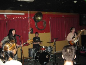Act III: 28 Degrees Taurus– Our second two piece of the evening, 28 Degrees Taurus headlines tonight’s show. The band consists of Karina Dacosta on drums and vocals and Jinsen Liu on guitar and vocals. They have a very atmospheric/pop song dynamic to them that I liken to that of No Age, and no not just because they are also a vocals/drums and guitar duo. I mean there certainly is that element, but the mellow, atmospheric meets hard edge punk feel strikes me more. Glen hears this as well and makes a comparison to early Wavves, particularly the live show circa September 2009 when it was just Nathan Williams and Zach Hill in the band. I do not walk away with this impression as much, but I guess that’s because I wasn’t cool enough to catch that Wavves show way back when brah. Anyway, I dig the first few songs, but after a while they start to fade on me and I feel a little bored. Listening to their bandcamp page now, I feel less bored though and I enjoy some of their songs much more. Overall, the set just seems too long, but the band appears to be having a lot of fun and that’s all that matters. Not to mention, various attendees are intensely fascinated by their set. Lastly, I am just finding out now that this group has been active since 2005, which is pretty rad, what’s also rad is the fact that they list artists as diverse as The Carpenters to Lightning Bolt as influences on their facebook page. Right on!