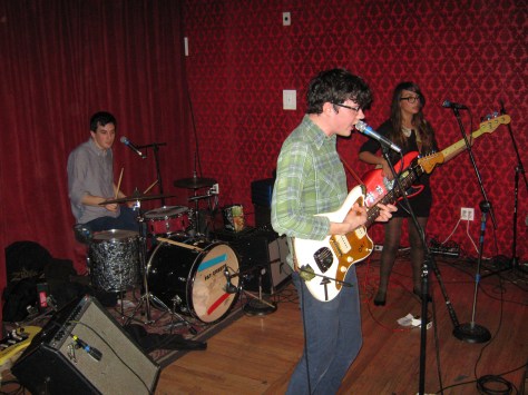 Earthquake Party! is a trio that like Sun Lions dabbles toward the more accessible fringes of pop ‘n roll. Their set consists of many very very brief tunes that are wild explosions of noise, fuzz, but most importantly melody. The guitarist Justin moves around the stage passionately while playing. So while he’s frantically singing and blasting away, Mallory (keyboard) and J-Raff (drums) keep things relatively in check. The energy of Earthquake Party! is perhaps their greatest attribute. They capture my attention immediately and always. I’ve seen them a few times before. This was the most fun I’ve had seeing them. To me they’re like a more catchy, snappy, ADD, Lost Sounds.